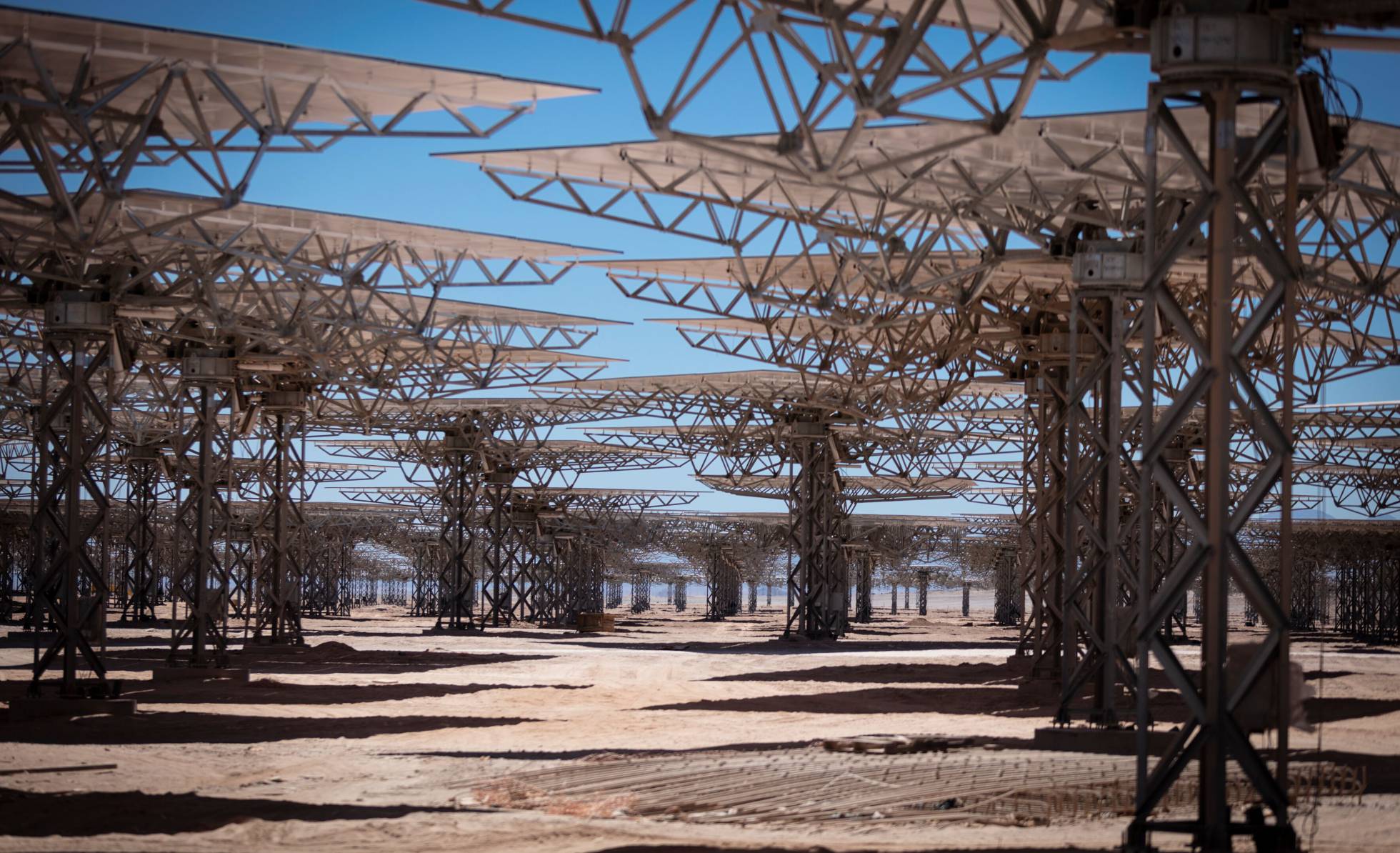 En el desierto de Atacama, en el norte de Chile, la radiación pega como en ningún otro lugar del planeta. El doble que en Dubái. Mucho más que en Marruecos. No existen casi días nublados, el cielo luce totalmente celeste y la humedad es inexistente. Es, por tanto, la mejor zona para aprovechar los rayos del sol y convertirlos en energía, según explican los ingenieros a cargo de Cerro Dominador, la primera planta termosolar de América Latina, que comenzará a funcionar en mayo. Está instalada en medio de la nada, a una hora en coche de la localidad de Calama —una de las principales ciudades mineras del país– y junto a un proyecto fotovoltaico ubicado en el mismo complejo. Generará energía suficiente para alimentar 240.000 hogares con 640.000 toneladas menos de emisiones de CO2, que equivale a lo que generan unos 357.000 coches.
